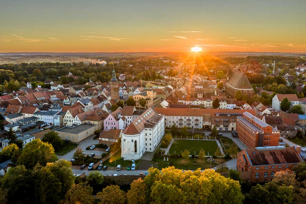 Für das 750-jährige Jubiläum von Luckau im Jahr 2026 haben wir einen Werbefilm/Teaserfilm produziert, der die Stadt, ihre Sehenswürdigkeiten und die Atmosphäre des Festjahres eindrucksvoll präsentiert. Ziel war es, Luckau sichtbar zu machen und die Feierlichkeiten durch visuelle Inhalte zu unterstützen, zum Beispiel Drohnenfotos für den Eventkalender der Stadt. Für die Aufnahmen haben wir hauptsächlich Drohnen eingesetzt, um die Altstadt und ihre historischen Gebäude aus einzigartigen Perspektiven zu zeigen. Besonders beeindruckend sind die Aufnahmen bei Sonnenauf- und Sonnenuntergang, die die Stadt in ein warmes Licht tauchen und die Architektur sowie die Altstadt vollständig in Szene setzen. So konnten wir Luckau einmal komplett von oben darstellen und die Größe und Schönheit der Altstadt eindrucksvoll vermitteln. Der fertige Film wurde in Luckau auf dem Schlossberg präsentiert, sodass viele Menschen ihn direkt sehen konnten. So entstand nicht nur ein Werbefilm für Social Media oder den Eventkalender, sondern ein visuelles Erlebnis, das vor Ort Wirkung entfaltet und Lust auf das Jubiläumsjahr macht.